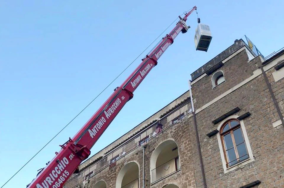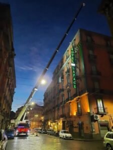 Sollevamenti in quota NapoliSollevamenti pesanti in quotaServizio GRU a Napoli per sollevamento pesante in quota.Sollevamento materiale fino a 100 metri con attrezzatura CERTIFICATA.1